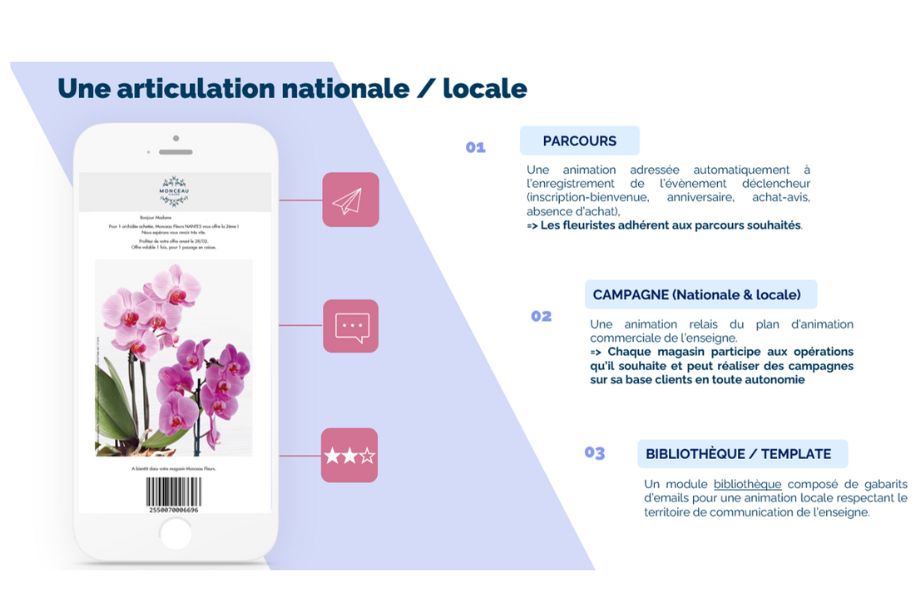 Grâce à la plateforme BeOne, Monceau Fleurs déploie une animation multicanale et personnalisée, combinant campagnes locales et nationales avec des ciblages précis. Le déploiement prochain du wallet viendra renforcer cette dynamique, offrant une expérience client plus fluide, intégrée et enrichie. En tant que suite de solutions évolutive, BeOne permet à la marque de grandir continuellement en intégrant de nouveaux usages et fonctionnalités au service de la relation client.